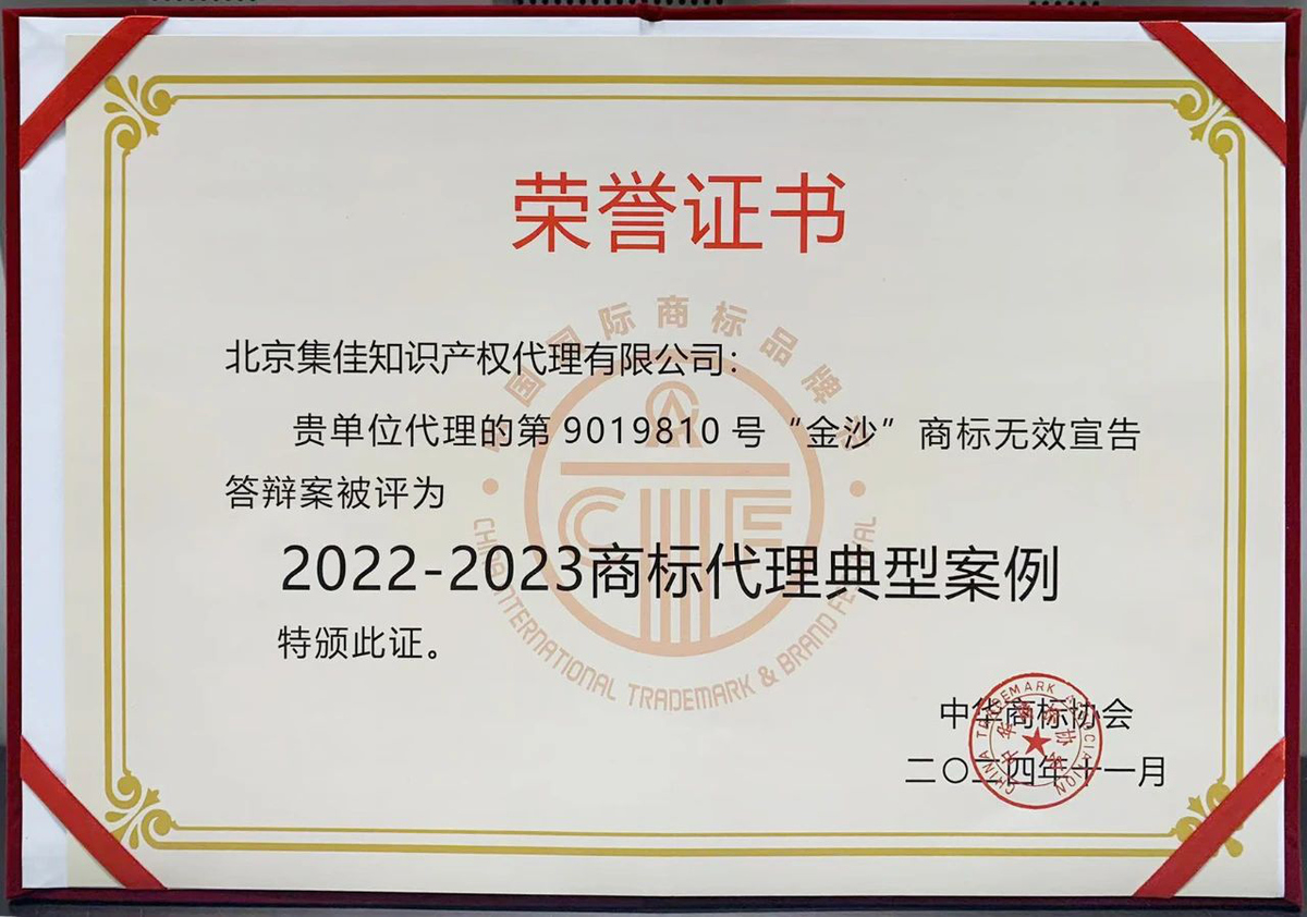 集佳代理的“金沙”商標(biāo)權(quán)無(wú)效宣告答辯案入選“2022-2023商標(biāo)代理典型案例”