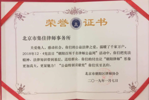 集佳律所榮獲北京市朝陽區(qū)律師協(xié)會(huì)“公益特別貢獻(xiàn)獎(jiǎng)”稱號