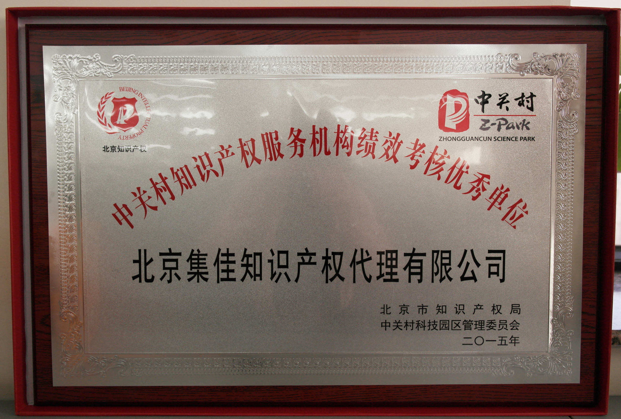 集佳獲評2015年度“中關(guān)村知識產(chǎn)權(quán)服務(wù)機(jī)構(gòu) 績效考核優(yōu)秀單位”