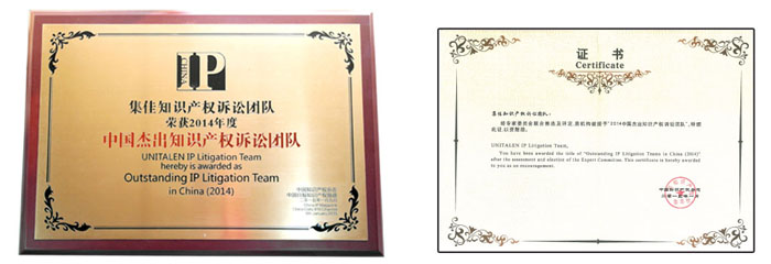 集佳榮獲“2014年中國杰出知識產(chǎn)權(quán)訴訟團隊”獎