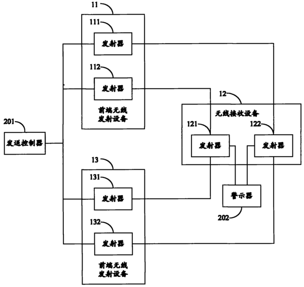 本實(shí)用新型實(shí)施例公開(kāi)了無(wú)線(xiàn)安防報(bào)警系統(tǒng)和裝置。其中,無(wú)線(xiàn)安防報(bào)警系統(tǒng)包括前端無(wú)線(xiàn)發(fā)射設(shè)備和無(wú)線(xiàn)接收設(shè)備,前端無(wú)線(xiàn)發(fā)射設(shè)備包括多個(gè)在發(fā)生警情時(shí)發(fā)送報(bào)警信號(hào)的發(fā)射器,任一發(fā)射器所發(fā)送報(bào)警信號(hào)的頻率與其他發(fā)射器所發(fā)送報(bào)警信號(hào)的頻率處于不同頻段;無(wú)線(xiàn)接收設(shè)備包括與多個(gè)發(fā)射器一一對(duì)應(yīng)的多個(gè)接收器??梢?jiàn),本實(shí)用新型實(shí)施例中任一發(fā)射器-接收器所工作的頻段與其他發(fā)射器-接收器所工作的頻段均不相同。當(dāng)工作于某個(gè)頻段的接收器遭受同頻干擾或鄰頻干擾時(shí),其他頻段的接收器還可與對(duì)應(yīng)的發(fā)射器保持正常通訊,從而解決了現(xiàn)有的、只使用單一頻段的無(wú)線(xiàn)安防報(bào)警系統(tǒng)因受到同頻干擾或鄰頻干擾而導(dǎo)致的漏報(bào)警問(wèn)題。 |