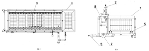 | 7 | 實(shí)用新型 | 易卸噴淋式噴頭裝置 | 本實(shí)用新型公開(kāi)了一種玻璃加工工具,具體涉及一種玻璃加工中使用的易卸噴淋式噴頭裝置,其特征在于:該裝置包括噴嘴(1)、滾輪(2)、藥液接入管道(3)、噴頭架(4)和噴頭底座(5),在噴頭架(4)下安裝有噴頭底座(5),噴嘴(1)安裝在噴頭底座(5)上,噴頭架(4)的上面設(shè)有藥液接入管道(3),在噴頭架(4)相對(duì)稱(chēng)的兩邊下端設(shè)有滾輪(2),工裝箱的兩側(cè)設(shè)有與滾輪(2)相配的軌道。本實(shí)用新型的作用是:采用這種噴頭,既能夠均勻的噴灑藥劑到玻璃上均勻反應(yīng),提高質(zhì)量并減少?lài)婎^堵塞對(duì)質(zhì)量的影響,又能非常方便拆卸下來(lái),方便清洗。 | ![]() |