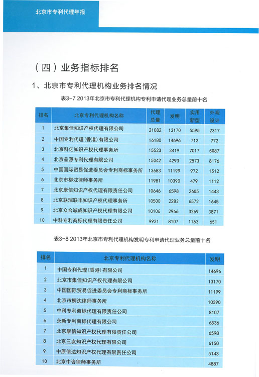 近日,市知識產(chǎn)權(quán)局發(fā)布2013年度《北京市專利代理年報》,對全市知識產(chǎn)權(quán)行業(yè)機(jī)構(gòu)情況、人員情況、業(yè)務(wù)經(jīng)營情況進(jìn)行數(shù)據(jù)統(tǒng)計和評比。集佳繼2012年獲得專利代理總量第一之后,2013年再次以發(fā)明、實用新型、外觀設(shè)計專利代理總量21082件的成績,在專利代理機(jī)構(gòu)業(yè)務(wù)排名中蟬聯(lián)第一。此外,北京市專利代理人協(xié)會還根據(jù)相關(guān)規(guī)定和專家綜合評審,對代理機(jī)構(gòu)進(jìn)行考核,最終評選出十家優(yōu)秀專利代理機(jī)構(gòu),集佳入選。