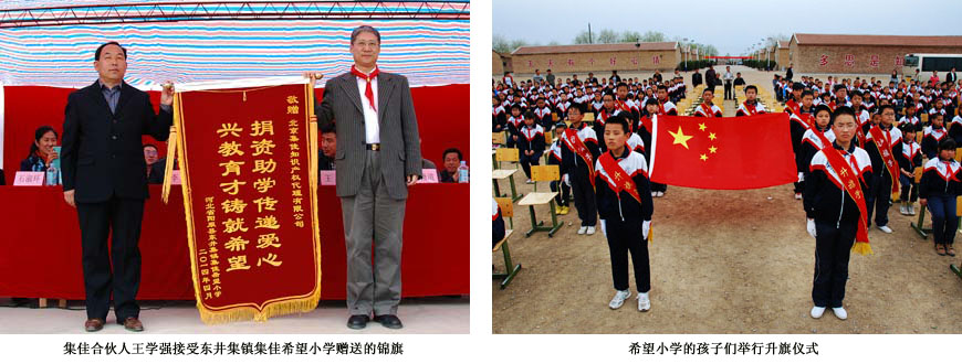 自2004年以來(lái),集佳支持“希望工程”,已捐建十所“希望小學(xué)”。集佳也被中國(guó)青基會(huì)列為重要捐贈(zèng)伙伴。改善我國(guó)農(nóng)村基礎(chǔ)教育設(shè)施,完善農(nóng)村青少年學(xué)習(xí)環(huán)境,這是我們的期望,希望通過(guò)集佳的綿薄之力,為更多的孩子創(chuàng)造良好的學(xué)習(xí)環(huán)境。
