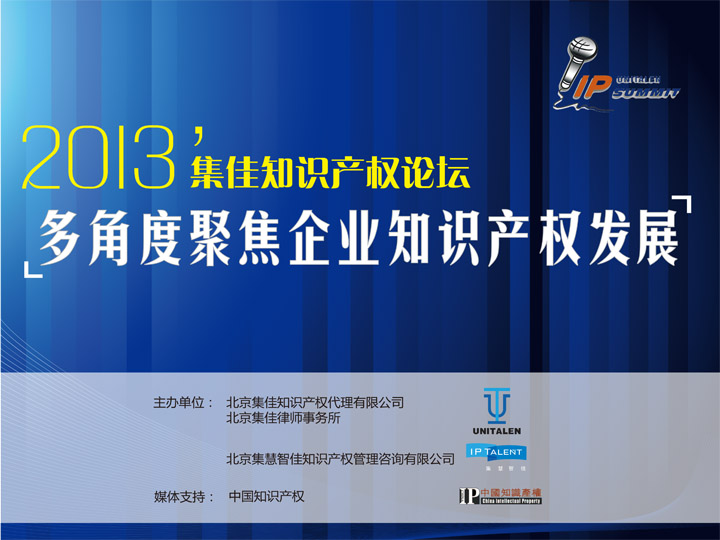 “2013’集佳知識產(chǎn)權(quán)論壇——多角度聚焦企業(yè)知識產(chǎn)權(quán)發(fā)展”將于2013年10月17-18日在北京日壇賓館報告廳舉辦,誠邀企業(yè)界代表參加。