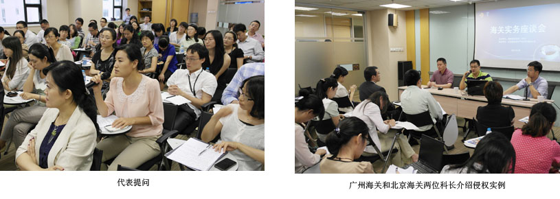 隨后,北京海關(guān)法規(guī)處知識(shí)產(chǎn)權(quán)科的亓明和廣州海關(guān)法規(guī)處知識(shí)產(chǎn)權(quán)科的黃衛(wèi)東兩位科長,結(jié)合來自海關(guān)一線侵權(quán)現(xiàn)象的大量實(shí)例和圖片,介紹了海關(guān)在打擊知識(shí)產(chǎn)權(quán)侵權(quán)工作中的具體流程、時(shí)間節(jié)點(diǎn)、查驗(yàn)標(biāo)準(zhǔn)等,并通過生動(dòng)的案例,為大家介紹了近年來侵權(quán)的特點(diǎn)和方式,以及高風(fēng)險(xiǎn)的產(chǎn)品和路線等。很多企業(yè)代表和律師都表示,從沒如此直觀、詳細(xì)地了解過海關(guān)在查驗(yàn)查扣侵權(quán)產(chǎn)品時(shí)的工作,增加了對(duì)海關(guān)工作的理解。