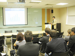 隨后,祖侃律師和陳丹律師分別為同學(xué)們做了有關(guān)中國專利訴訟和中國商標(biāo)保護方面的專題講座。使同學(xué)們對中國的知識產(chǎn)權(quán)制度及情況有了完整而全面的了解。輕松愉悅的英文表述消除了語言溝通上的障礙,對實踐問題的精辟講解也激起了學(xué)生們濃厚的興趣,兩個多小時的精彩演講使修研團的同學(xué)們充分接觸了在學(xué)校中沒有遇到過的經(jīng)典案例和專業(yè)分析。隨后,修研團內(nèi)的兩名研究生將繼續(xù)留在集佳,進行為期兩個月的深入實踐學(xué)習(xí)。
