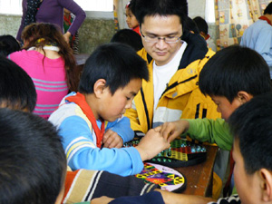 捐贈(zèng)儀式過后,大家和同學(xué)們做起了游戲,并把準(zhǔn)備好的五十份游戲獎(jiǎng)品及同事帶來的小禮品送給他們。