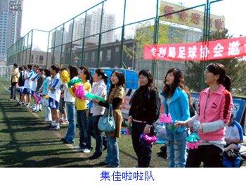 比賽場上,集佳隊員身著球隊隊服整裝出戰(zhàn),個個精神抖擻,士氣高漲;專利局隊也不示弱,賽場上的進攻、配合、組織都顯示出了極高的專業(yè)素質(zhì)。帶球、過人、傳球、射門……精彩又緊張的環(huán)節(jié)此起彼伏,雙方隊員都發(fā)揮出了很好的比賽狀態(tài)。比賽場下,一面是兩隊教練及替補球員積極商討戰(zhàn)術(shù),變換打法;一面是熱情的啦啦隊員籌備了種類繁多的道具,不停吶喊、助威。