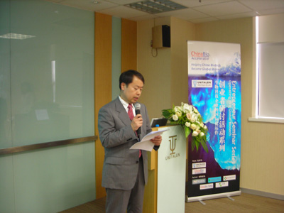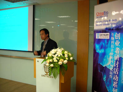 經(jīng)過(guò)十多年的發(fā)展,集佳已經(jīng)和國(guó)內(nèi)多家生物科技企業(yè)建立知識(shí)產(chǎn)權(quán)方面的合作,正因?yàn)槿绱?,ChinaBio Accelerator選擇了把集佳作為首次活動(dòng)的舉辦地點(diǎn),同時(shí)邀請(qǐng)了在生物技術(shù)領(lǐng)域有著豐富經(jīng)驗(yàn)的知識(shí)產(chǎn)權(quán)專(zhuān)家集佳合伙人劉超博士出席并做演講。出席本次活動(dòng)的嘉賓還有ChinaBio總裁和創(chuàng)建人Greg B. Scott 先生、保諾科技(北京)有限公司CEO Nigel R.A. Beeley博士。他們分別就中國(guó)企業(yè)如何吸引投資者、如何通過(guò)外包降低藥物研發(fā)成本的主題進(jìn)行了精彩的演講。