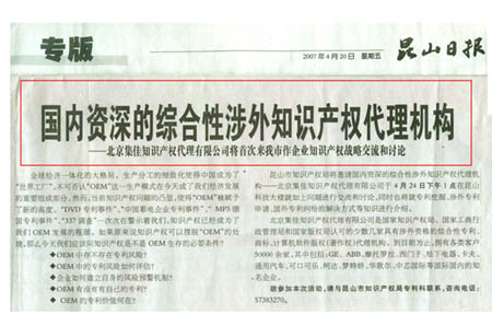 針對此次集佳首次赴昆山市作知識(shí)產(chǎn)權(quán)講座,當(dāng)?shù)孛襟w如《昆山日報(bào)》等進(jìn)行了詳細(xì)報(bào)道。