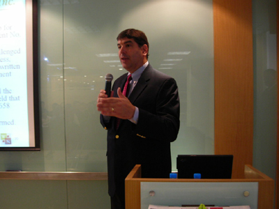 另一講座的專家是來自鹽湖城的律師事務(wù)所,該所是鹽湖城最大的知識產(chǎn)權(quán)事務(wù)所。與上一律師事務(wù)所演講內(nèi)容互為補充,該所專家側(cè)重介紹了美國專利實踐中的最新發(fā)展,美國專利改革的現(xiàn)狀,專利賠償金額情況,尤其是通過分析典型案例對美國專利審查的新動向作了詳細地說明,具有重要的實踐指導(dǎo)作用。