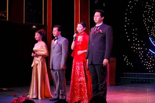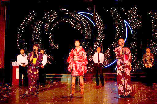 你剛唱罷我登場(chǎng),同樣以唱見長(zhǎng)的還有六個(gè)節(jié)目。河南辦的史國興一曲《今天》,讓大家領(lǐng)略到了劉德華的風(fēng)采;國際機(jī)械部的《明天會(huì)更好》結(jié)合上了朱登河老師的激情朗誦;《心愿》由國際商標(biāo)部帶出,讓大家感覺到了精美的嗓音;溫州辦事處的《朋友別哭》由張主任親率上馬,雖不及朱安靜唱功深厚,但向我們傳達(dá)了辦事處的心聲;日本部的歌聲由日籍顧問橫關(guān)先生加盟,女士則以和服登場(chǎng),聯(lián)唱了數(shù)首日本名歌,給人耳目一新的感覺;《好人好夢(mèng)》就像薊門橋員工手中的紅燭,祝福著所有的集佳人。