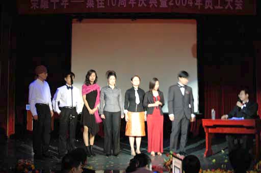 我們自編自演的文藝節(jié)目是本次慶典的重頭戲,在3個(gè)半小時(shí)里,共有來自總部各部門及辦事處的23個(gè)節(jié)目、230人次登場(chǎng),節(jié)目精彩紛呈,花樣繁多,在場(chǎng)的所有人都被這臺(tái)超高水準(zhǔn)的表演折服了,迭起的掌聲、絢麗的熒光交織成一場(chǎng)盛宴,期間,2004—2005年度的優(yōu)秀員工還獲得了獎(jiǎng)勵(lì)。