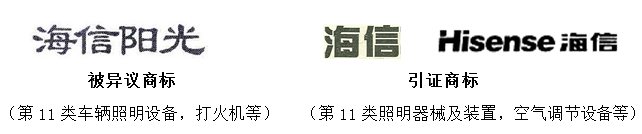 申請理由和法律依據(jù):第11類被異議商標與申請人在先注冊的第11類引證商標“海信”構成類似商品上的近似商標,并構成對申請人在第9類注冊“海信”馳名商標的復制摹仿,易誤導公眾致使申請人的利益受到損害。請求依據(jù)《商標法》第十三條三款、第三十條等規(guī)定,對被異議商標不予核準注冊。