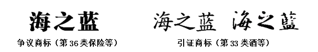 事實理由和法律依據(jù):盛唐公司在第36類“保險,金融管理,藝術品估價,不動產(chǎn)出租,商品房銷售,擔保,募集慈善基金,受托管理,典當經(jīng)紀”服務上注冊了“海之藍”商標,洋河公司提出無效宣告后,商評委裁定撤銷爭議商標。盛唐公司不服向北京知識產(chǎn)權法院起訴,法院維持商評委裁定,并明確了“海之藍”系中國馳名商標之事實,通過認定馳名商標對爭議商標予以無效宣告。