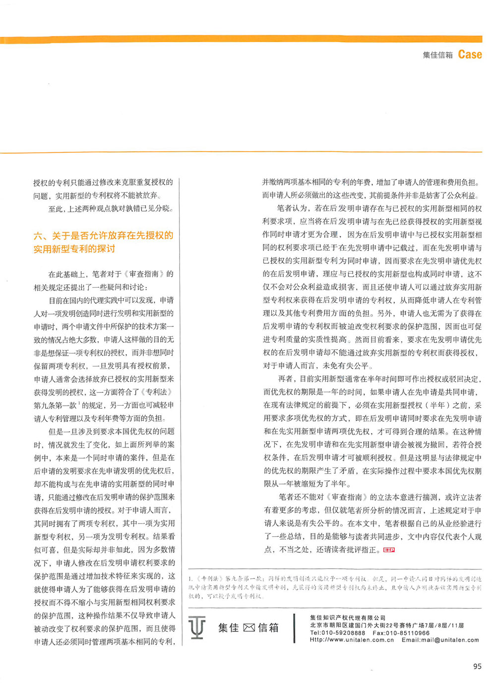 集佳代理人文章《論在先授權(quán)的實(shí)用新型與要求本國(guó)優(yōu)先權(quán)的在后發(fā)明申請(qǐng)相關(guān)問(wèn)題的處理》在《電子知識(shí)產(chǎn)權(quán)》發(fā)表