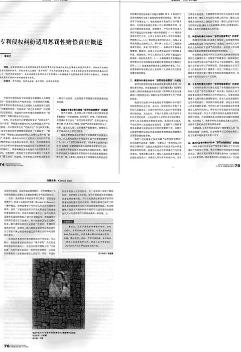 《中國(guó)發(fā)明與專利》:專利侵權(quán)糾紛適用懲罰性賠償責(zé)任概述