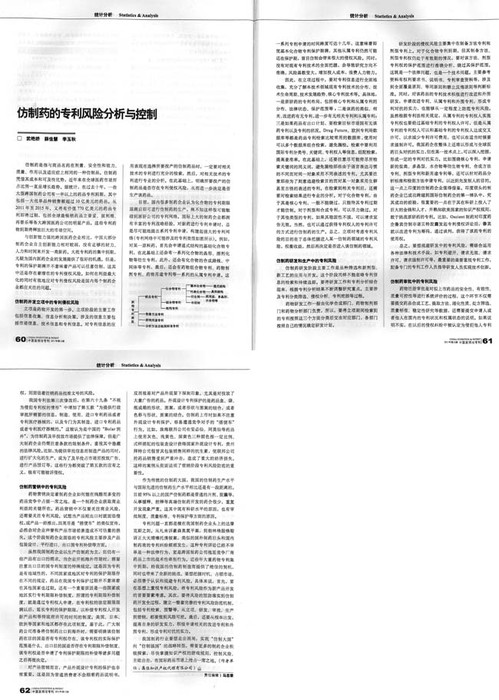 《中國發(fā)明與專利》:仿制藥的專利風(fēng)險(xiǎn)分析與控制