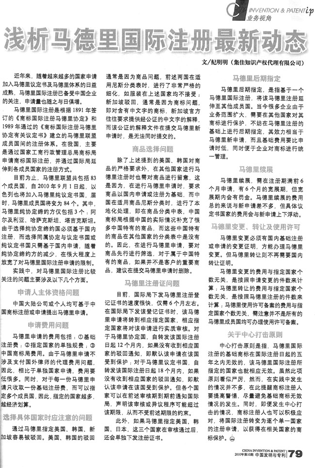 《中國(guó)發(fā)明與專(zhuān)利》:淺析馬德里國(guó)際注冊(cè)最新動(dòng)態(tài)