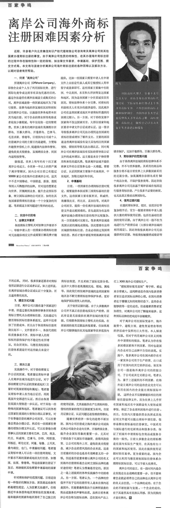 《再生時代》:離岸公司海外商標(biāo)注冊困難因素分析