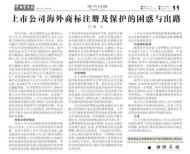 《中國貿(mào)易報(bào)》:上市公司海外商標(biāo)注冊及保護(hù)的困惑與出路