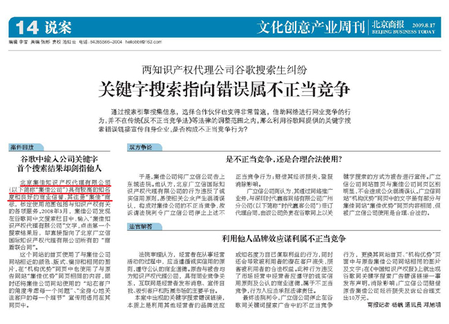 《北京商報(bào)》:關(guān)鍵詞搜索指向錯(cuò)誤屬不正當(dāng)競(jìng)爭(zhēng)