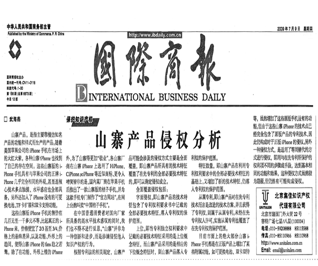 《國(guó)際商報(bào)》:山寨產(chǎn)品侵權(quán)分析