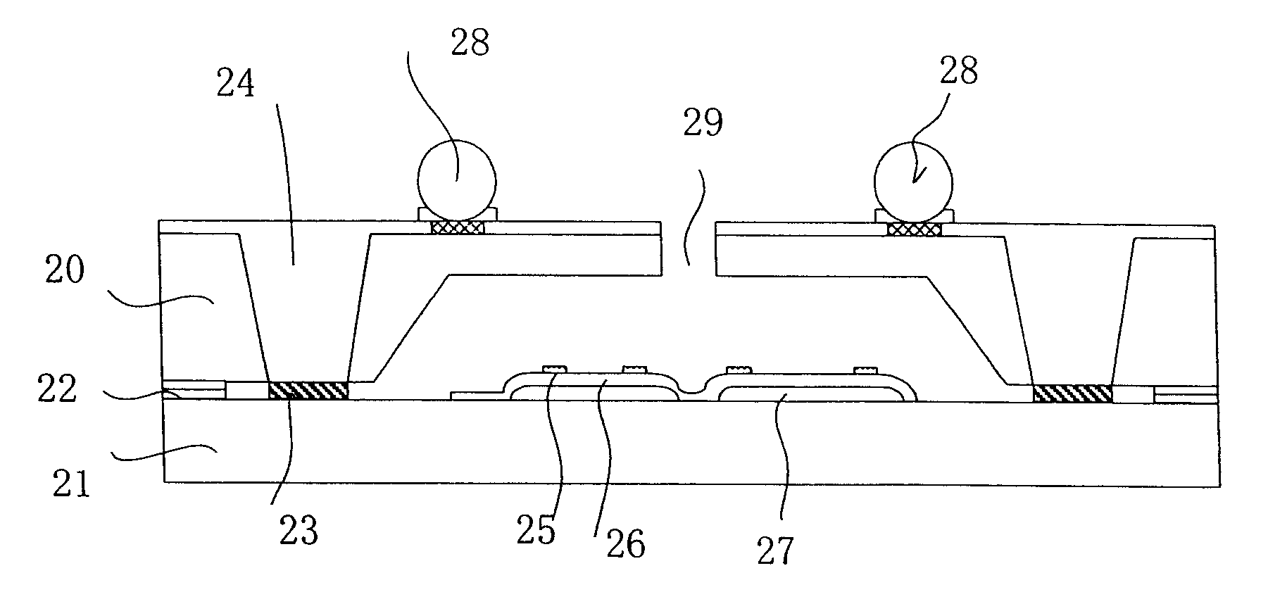 而根據(jù)對(duì)比文件1圖2(下圖I)可以看出,金屬層24直接裸露與整個(gè)芯片外部,其與焊接凸點(diǎn)28電連接,并不位于某種介質(zhì)之間;并且由于對(duì)比文件1中也沒(méi)有公開(kāi)信號(hào)處理電路,因此,金屬層24也必然不位于信號(hào)處理電路的上方。因此,對(duì)比文件1中的金屬層24與本申請(qǐng)第二襯底的導(dǎo)體連線層的位置不同,其次,對(duì)比文件1中金屬層24的作用是用于將壓力傳感器的信號(hào)向MEMS的外部傳送,而不是用于將壓力傳感器的信號(hào)傳送至MEMS內(nèi)部某一襯底中的信號(hào)處理電路。所以,兩者的作用也不同,因此,對(duì)比文件1中的金屬層24不相當(dāng)于本申請(qǐng)權(quán)利要求1中導(dǎo)體連線層。