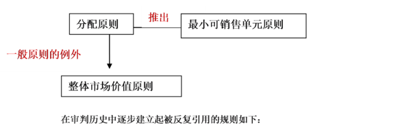 美國(guó)在相關(guān)的判例中確立了一套相應(yīng)的規(guī)則。早在1953年,美國(guó)最高法院便在判決中提及,不考量專利是否涵蓋整個(gè)機(jī)器或是機(jī)器的改良而用相同規(guī)則來(lái)計(jì)算損害賠償,是個(gè)很嚴(yán)重的錯(cuò)誤。至1984年的Garretson v. Clark案,這一做法進(jìn)一步確立,即:在計(jì)算合理的許可費(fèi)時(shí),不應(yīng)該以侵權(quán)產(chǎn)品的總價(jià)作為計(jì)算基礎(chǔ),如果專利只占了產(chǎn)品或服務(wù)的一小部分,法院應(yīng)該以專利所涉及的產(chǎn)品利益部分作為判決基礎(chǔ),此之謂“分配原則”。