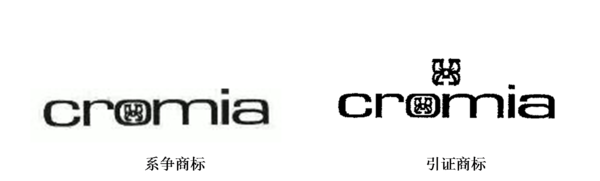 “cromia及圖” 商標(下稱引證商標,如圖)由意大利拉瓦瑞茲恩佩利特瑞股份有限公司(下稱意大利拉瓦公司)于2004年1月5日創(chuàng)作完成,并于2004年3月率先于意大利公開使用在箱包等產(chǎn)品上。