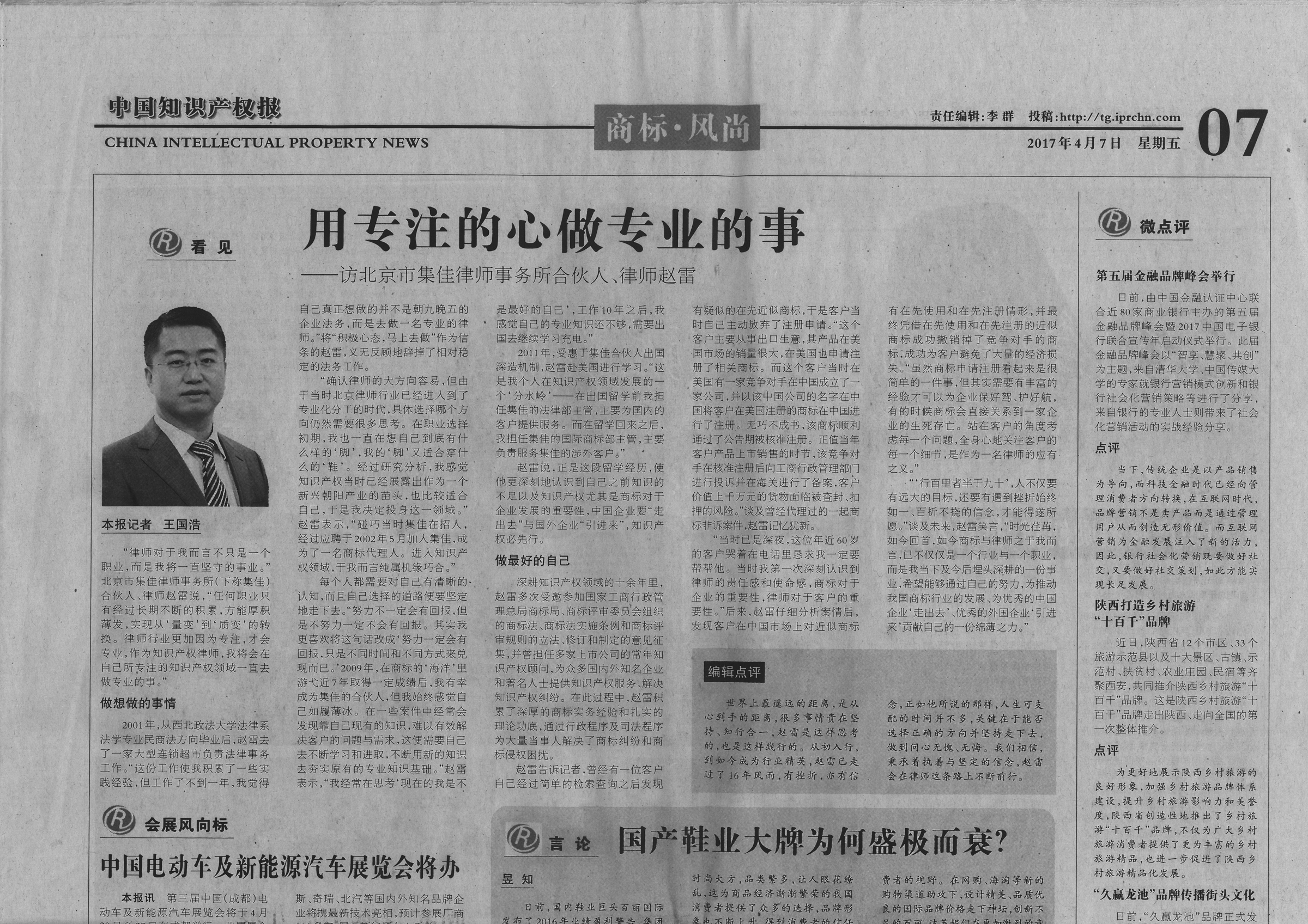 中國知識(shí)產(chǎn)權(quán)報(bào)專訪:趙雷