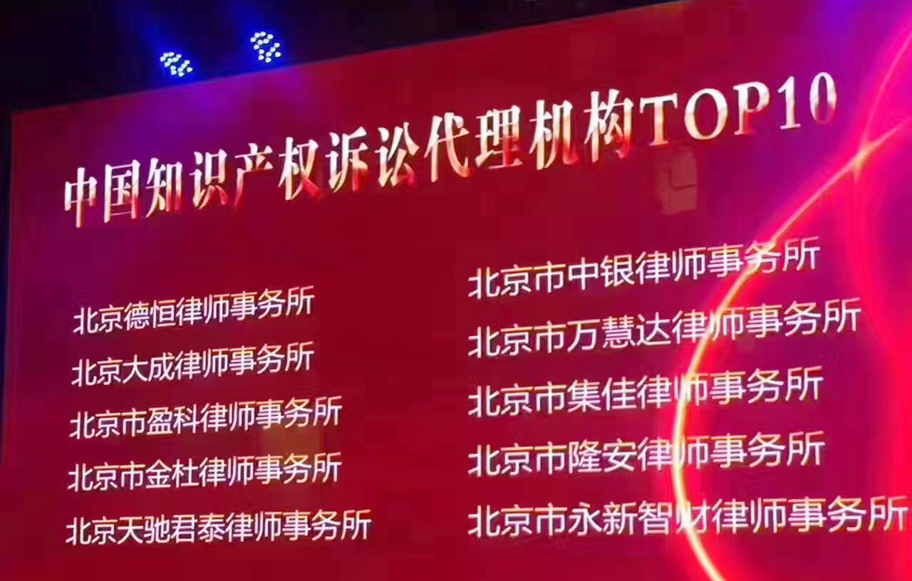 2017年6月23日,備受關(guān)注的知產(chǎn)寶“2016年度中國(guó)十佳知識(shí)產(chǎn)權(quán)訴訟代理機(jī)構(gòu)榜單發(fā)布會(huì)”在北京隆重舉行,北京市集佳律師事務(wù)所憑借穩(wěn)健的綜合實(shí)力,入選“中國(guó)知識(shí)產(chǎn)權(quán)訴訟代理機(jī)構(gòu)”TOP10和“中國(guó)商標(biāo)行政訴訟代理機(jī)構(gòu)”TOP10榜單。國(guó)內(nèi)知識(shí)產(chǎn)權(quán)知名法律服務(wù)機(jī)構(gòu),近百位國(guó)內(nèi)外大中型企業(yè)代表,以及36家知名媒體齊聚一堂,共同見(jiàn)證了榜單發(fā)布情況。