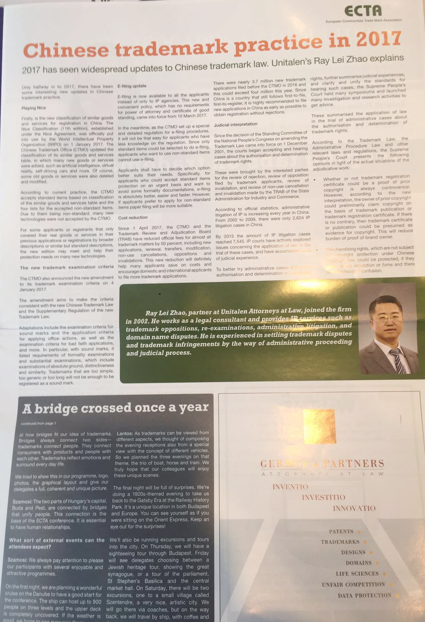 2017 has been widespread updates to Chinese trademark law. Unitalen’s Ray Lei Zhao explains