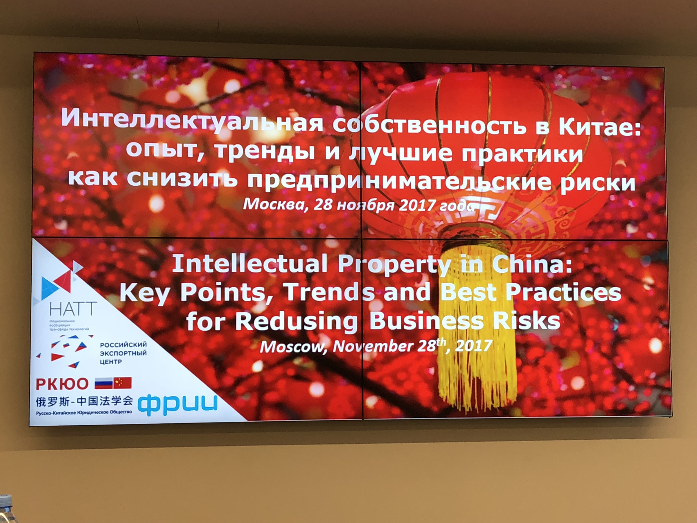 11月28日,應(yīng)俄羅斯技術(shù)轉(zhuǎn)讓協(xié)會、俄羅斯出口中心、俄羅斯互聯(lián)網(wǎng)活動發(fā)展基金以及俄羅斯-中國法學(xué)會邀請,集佳趙雷律師、潘煒律師共赴莫斯科參加了關(guān)于中國知識產(chǎn)權(quán)保護的專題研討會。
