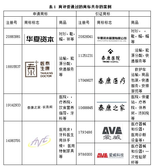 表1 商評(píng)委通過的商標(biāo)共存的案例