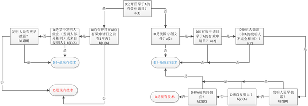 下圖示出了一種判斷對比文件D是否是專利申請A的現(xiàn)有技術(shù)的方法。