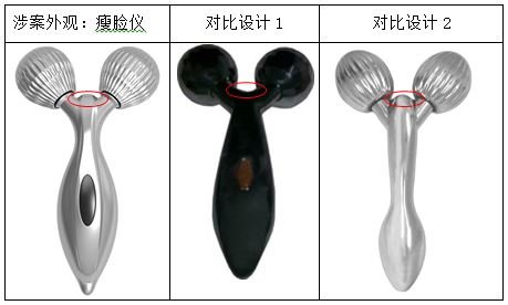 合議組認(rèn)為,用于組合的對比設(shè)計(jì)特征應(yīng)當(dāng)是對比設(shè)計(jì)中具有相對獨(dú)立視覺效果的組成部分,是以一般消費(fèi)者眼光可直接從對比設(shè)計(jì)中自然區(qū)分出來的部分。本案中,證據(jù)2的兩個(gè)按摩球中間的凸出部位實(shí)際上是手柄的頂部,證據(jù)2的手柄為一體構(gòu)成,該凸出部分屬于特意劃分、截取所得出的部分,不是一般消費(fèi)者可直接從證據(jù)2中自然區(qū)分獲知的,不能作為設(shè)計(jì)特征加以組合。