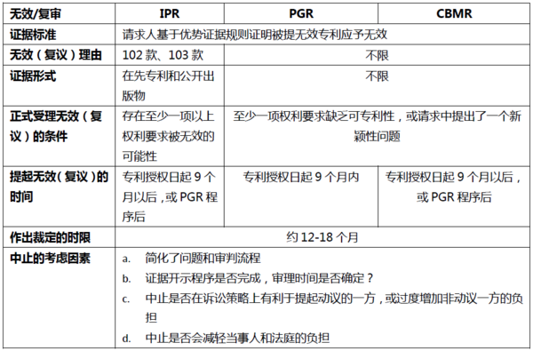 7、以下是IPR、PGR、CBMR三個(gè)程序?qū)Ρ缺恚?/strong>