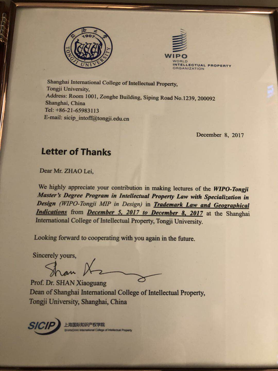 2017年12月5日到8日,集佳合伙人趙雷律師應(yīng)邀前往上海,受聘兼職教授為首屆上海國際知識產(chǎn)權(quán)學(xué)院的2017屆新生進行授課講學(xué)。上海國際知識產(chǎn)權(quán)學(xué)院成立于同濟大學(xué),為培養(yǎng)知識產(chǎn)權(quán)國際化人才開展的世界知識產(chǎn)權(quán)組織—同濟大學(xué)聯(lián)合培養(yǎng)知識產(chǎn)權(quán)法碩士項目。本屆新生匯集了包含中國在內(nèi)的21個國家的學(xué)生,涵蓋了非洲、歐洲、拉美和亞洲的多個國家和地區(qū),其中一部分是其所在國家商標(biāo)局、版權(quán)局的現(xiàn)任審查員、仲裁員、律師。