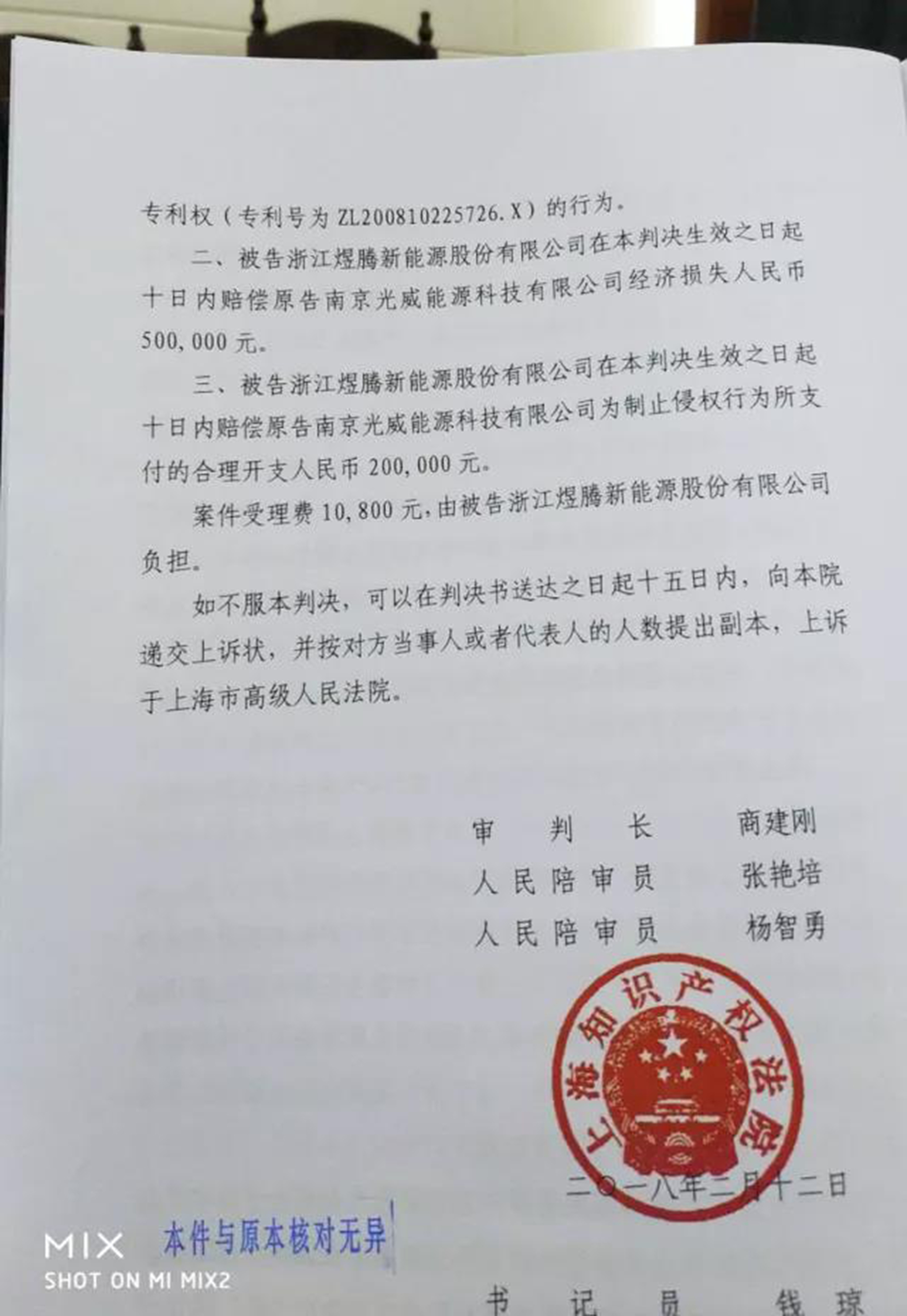 集佳代理南京光威能源科技有限公司(以下簡(jiǎn)稱“光威公司”)訴浙江煜騰新能源股份有限公司(以下簡(jiǎn)稱“煜騰公司”)侵害發(fā)明專利權(quán)糾紛一案,經(jīng)上海知識(shí)產(chǎn)權(quán)法院一審查明事實(shí)后,于2018年2月12日宣判:被告煜騰公司制造、銷售、許諾銷售的被控“板式太陽(yáng)能集熱器產(chǎn)品”落入涉案專利權(quán)的保護(hù)范圍,被告在判決生效之日起停止侵害涉案發(fā)明專利權(quán)的行為,并全額支持了原告主張的侵權(quán)損害賠償及合理開支。