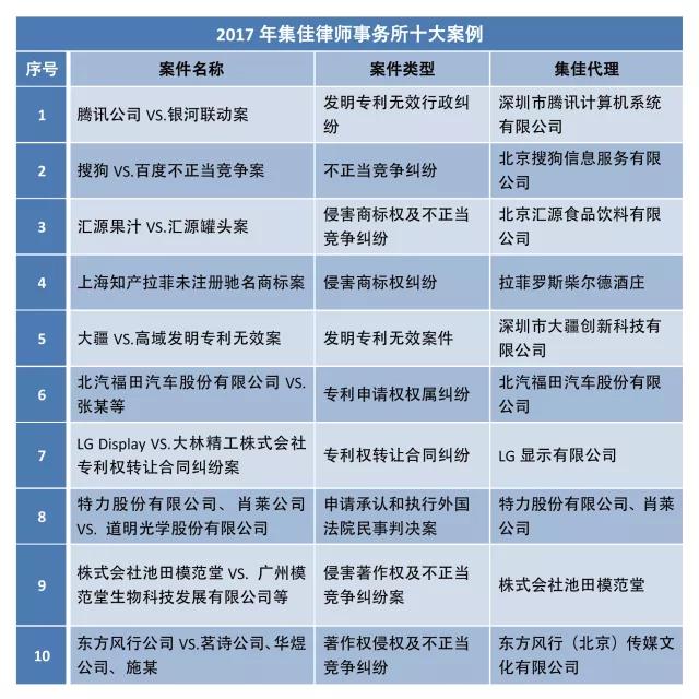 集佳代理的入選各地法院十大知識(shí)產(chǎn)權(quán)案例的其他典型案件如下: