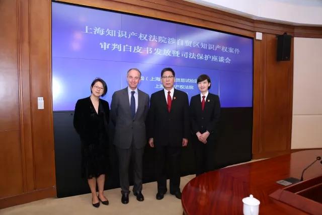 4月20日,上海知識產(chǎn)權(quán)法院與中國(上海)自由貿(mào)易試驗區(qū)管委會聯(lián)合召開涉自貿(mào)區(qū)知識產(chǎn)權(quán)案件審判白皮書發(fā)布暨司法保護座談會。上海市高級人民法院副院長張斌、浦東新區(qū)副區(qū)長王靖、上海知識產(chǎn)權(quán)法院院長王秋良、浦東新區(qū)知識產(chǎn)權(quán)局局長林本初出席,集佳侯玉靜律師、黃鶯律師陪同拉菲羅斯柴爾德集團CEO Prats先生、中國市場部經(jīng)理宋萍經(jīng)理參加,與來自十余家知名企業(yè)的代表、權(quán)威媒體共同見證了白皮書的發(fā)布,并應(yīng)邀出席司法保護座談會。