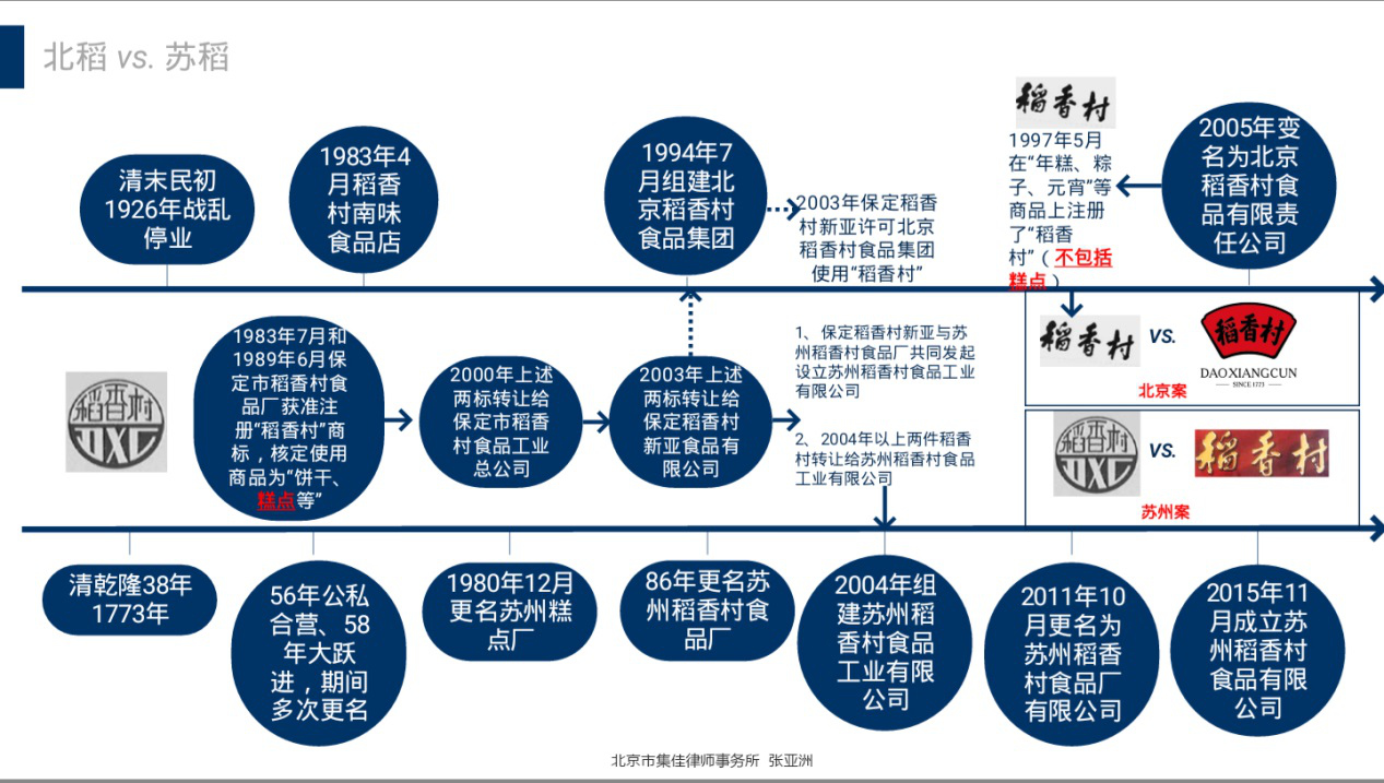 10月12日,蘇州稻香村在一審中獲得勝訴,北京稻香村被判停止在糕點(diǎn)類(lèi)商品上使用“稻香村”標(biāo)識(shí),并賠償蘇稻115萬(wàn)元。而就在一個(gè)月前的9月10日,北京知識(shí)產(chǎn)權(quán)法院判決,北京蘇稻公司、蘇州稻香村公司停止在“粽子、月餅、糕點(diǎn)”等商品上使用“稻香村”商標(biāo),賠償原告北京稻香村公司經(jīng)濟(jì)損失及合理費(fèi)用3000萬(wàn)元。為何北京、蘇州兩個(gè)法院判決”相反“?北京稻香村和蘇州稻香村真有“冒牌貨”?十多年的商標(biāo)戰(zhàn),誰(shuí)勝誰(shuí)負(fù)?北京時(shí)間獨(dú)家邀請(qǐng)知識(shí)產(chǎn)權(quán)方面知名律師張亞洲,詳解南北稻香村商標(biāo)戰(zhàn)。
