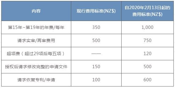 自2020年2月13日起,新西蘭將執(zhí)行新的官費(fèi)標(biāo)準(zhǔn),較為重要的費(fèi)用調(diào)整包括:(1)引入超項(xiàng)費(fèi);(2)審查費(fèi)用增加;(3)大大調(diào)高了維持費(fèi)和續(xù)展費(fèi),尤其從第15年開始,詳見下表: