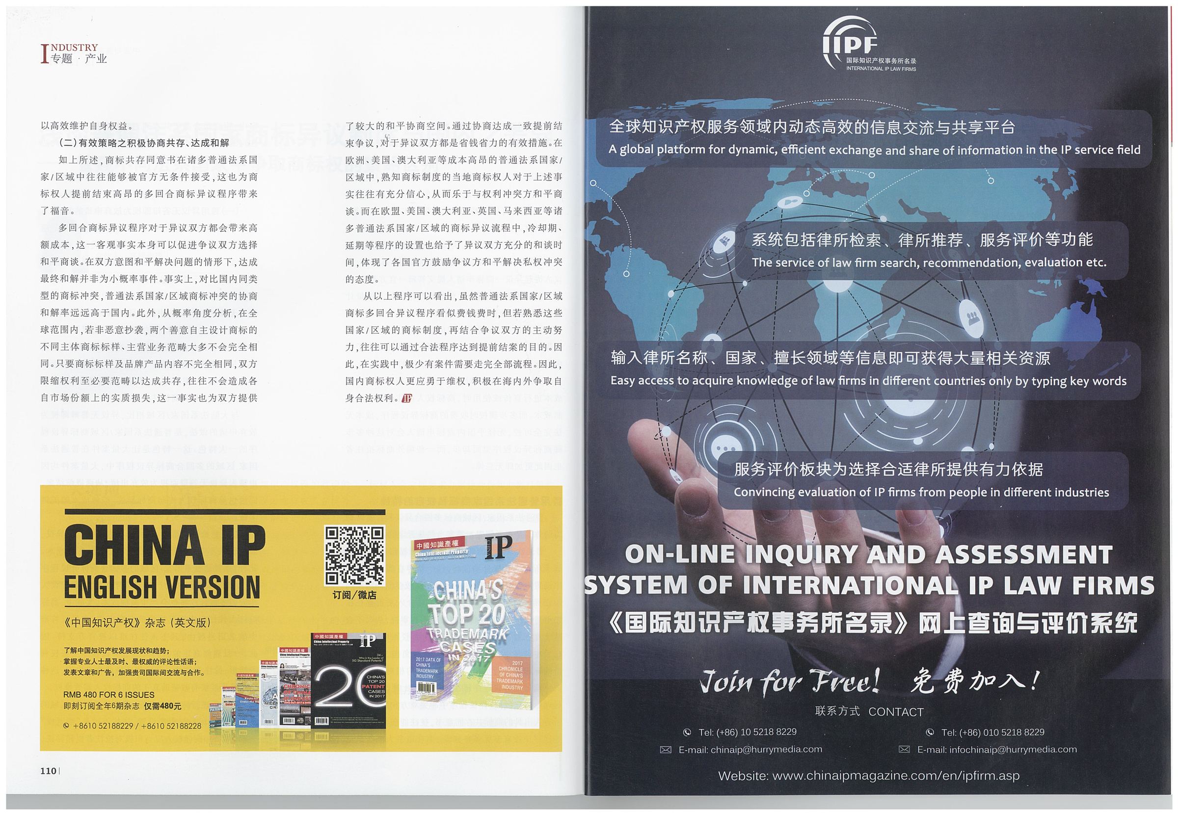 集佳文章《淺談普通法系國(guó)家商標(biāo)異議制度與國(guó)內(nèi)之差異——管窺不同法系國(guó)家中爭(zhēng)取商標(biāo)權(quán)的策略區(qū)別》在《中國(guó)知識(shí)產(chǎn)權(quán)》發(fā)表