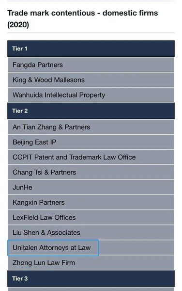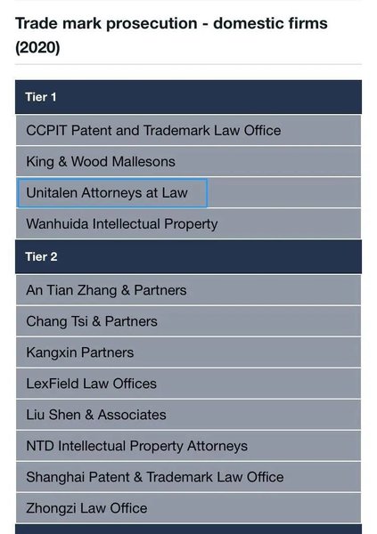 近日,全球領(lǐng)先的權(quán)威知識產(chǎn)權(quán)媒體《知識產(chǎn)權(quán)管理》(Managing Intellectual Property,MIP)公布了2020年商標(biāo)業(yè)務(wù)的知識產(chǎn)權(quán)之星排行榜,集佳再次蟬聯(lián)商標(biāo)申請及確權(quán)領(lǐng)域(Trademark Prosecution)排行榜第一梯隊,并榮登商標(biāo)保護(hù)及訴訟領(lǐng)域(Trademark Contentious)排行榜第二梯隊。