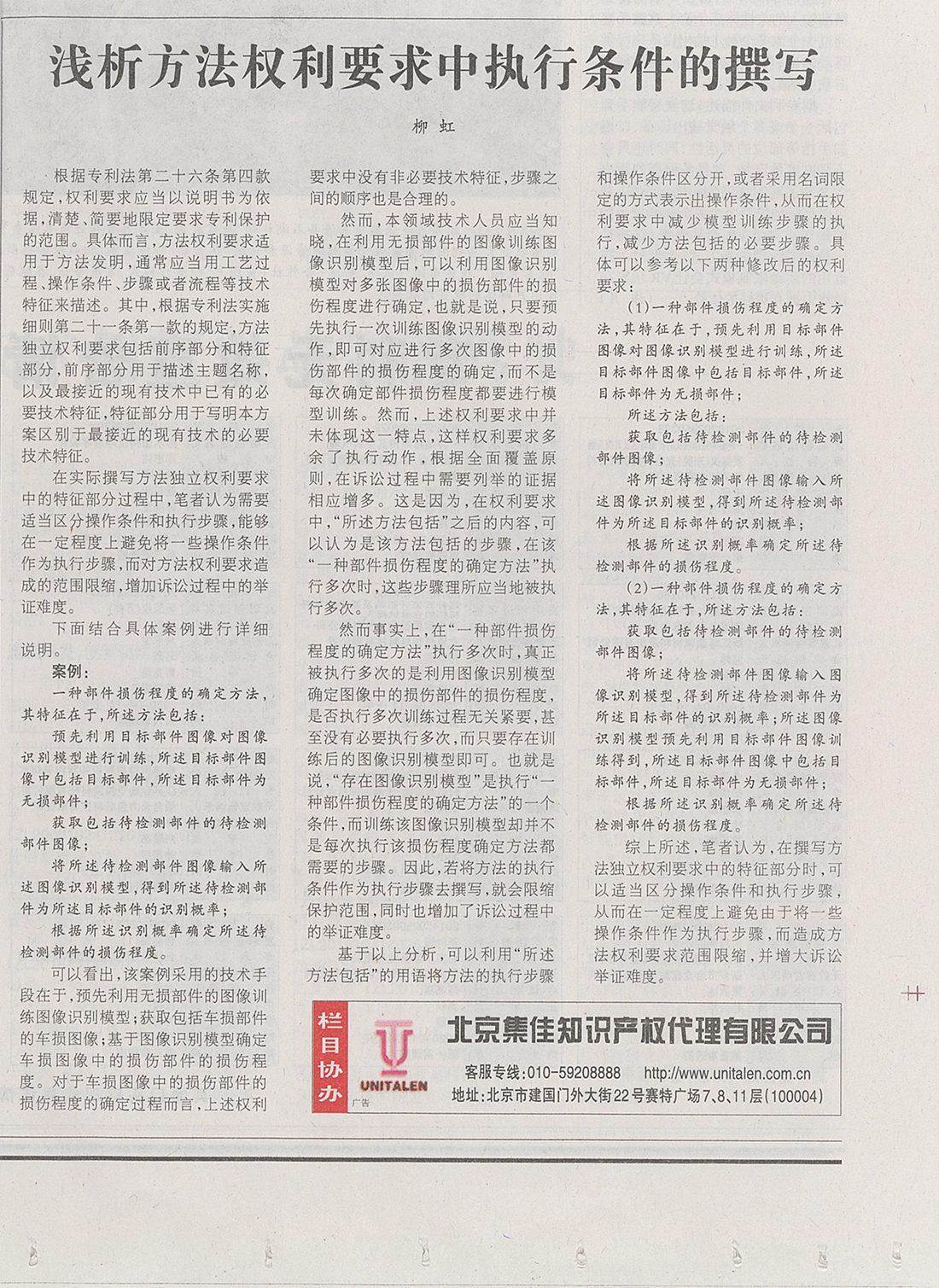 集佳文章《淺析方法權(quán)利要求中執(zhí)行條件的撰寫》在《中國知識產(chǎn)權(quán)報》發(fā)表