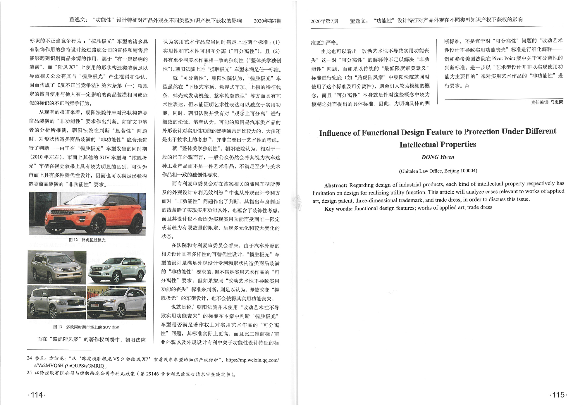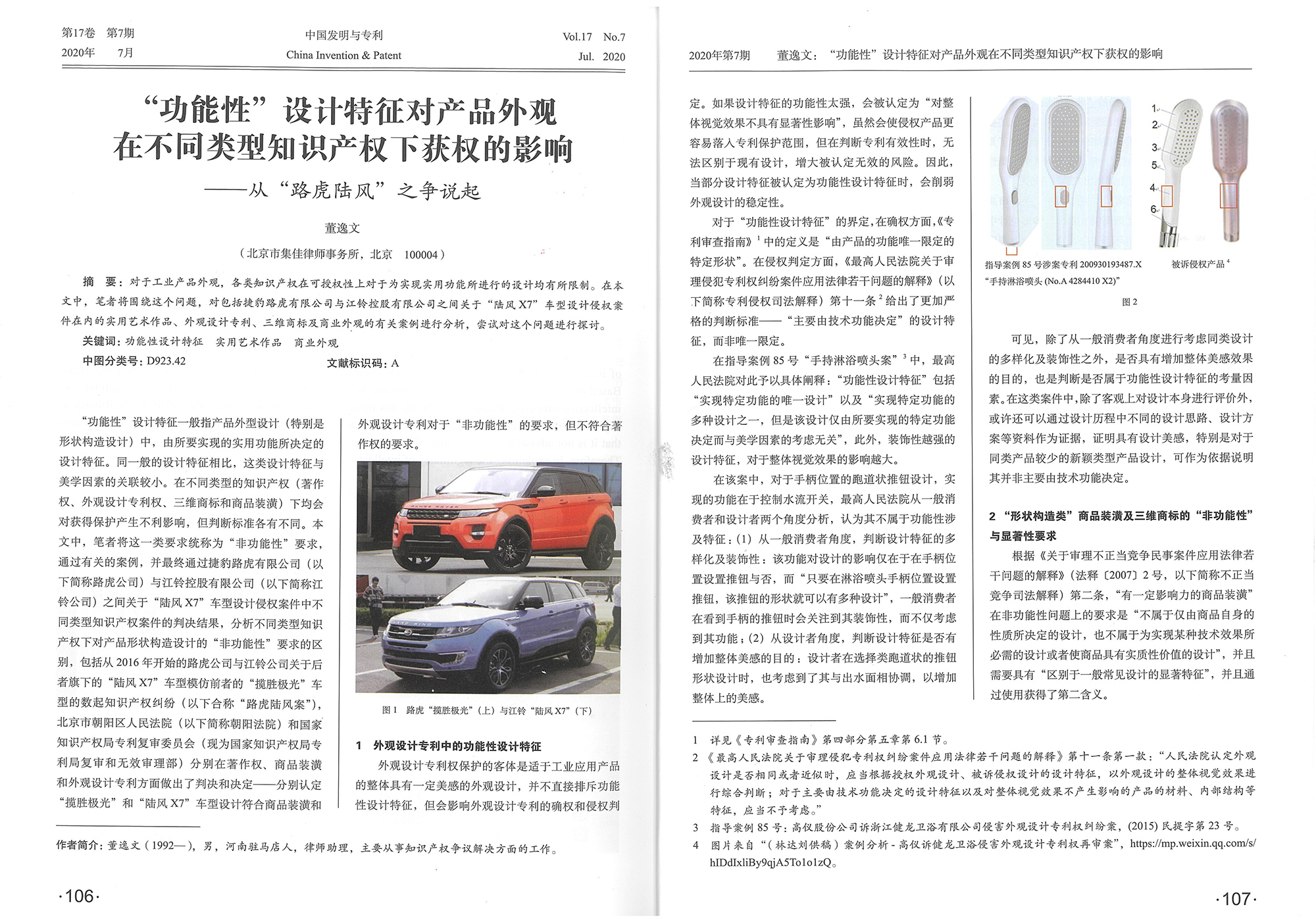 集佳文章《“功能性”設(shè)計特征對產(chǎn)品外觀在不同類型知識產(chǎn)權(quán)下獲權(quán)的影響——從“路虎陸風(fēng)”之爭說起》在《中國發(fā)明與專利》發(fā)表