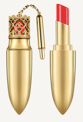 LG生活健康是全球知名的化妝品公司,其“后WHOO圖片”系列“拱辰享美奢冠鎏金唇膏”雖為女性妝品,但其柔美中略帶力量感的設(shè)計(jì)(參見下圖)構(gòu)思精巧,奪人眼目,一經(jīng)推出便為廣大女性受眾所喜愛。